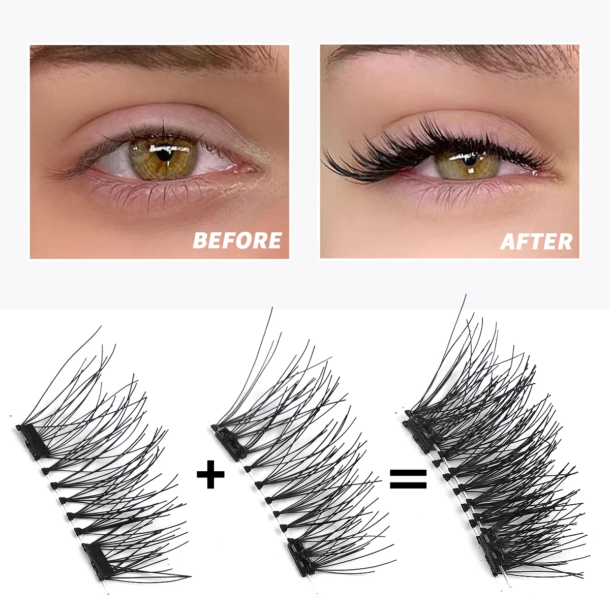 MAGEFY 2 Boxes Magnetic Lashes with Eyebrow Brush Natural Extend Cat Eye Lashes Cross Magnifying Eyes Beauty Makeup Accessory